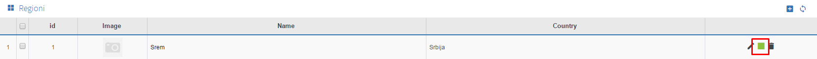 što znači da region više nije aktivan. Na isti način ukoliko je region deaktiviran a potrebno ga je aktivirati, potrebno je da se klikne na i on će postati