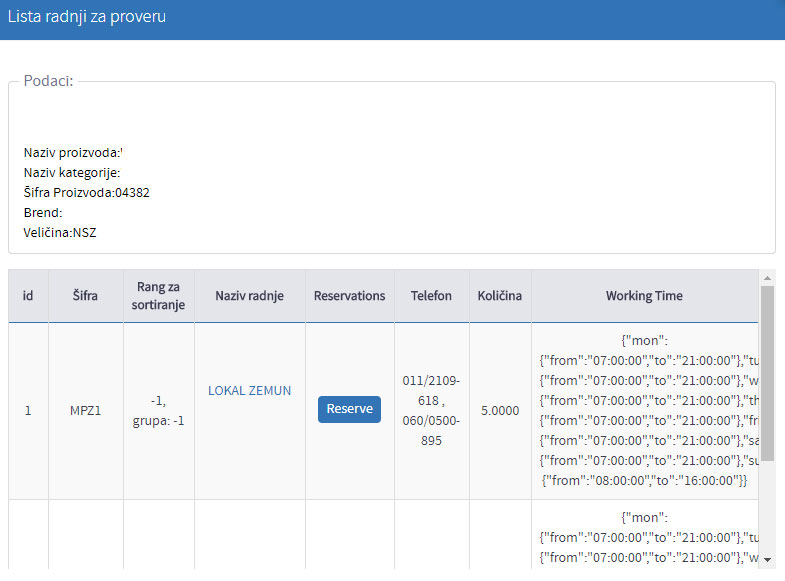 - Rezervacija proizvoda po radnjama na osnovu provere dostupnosti