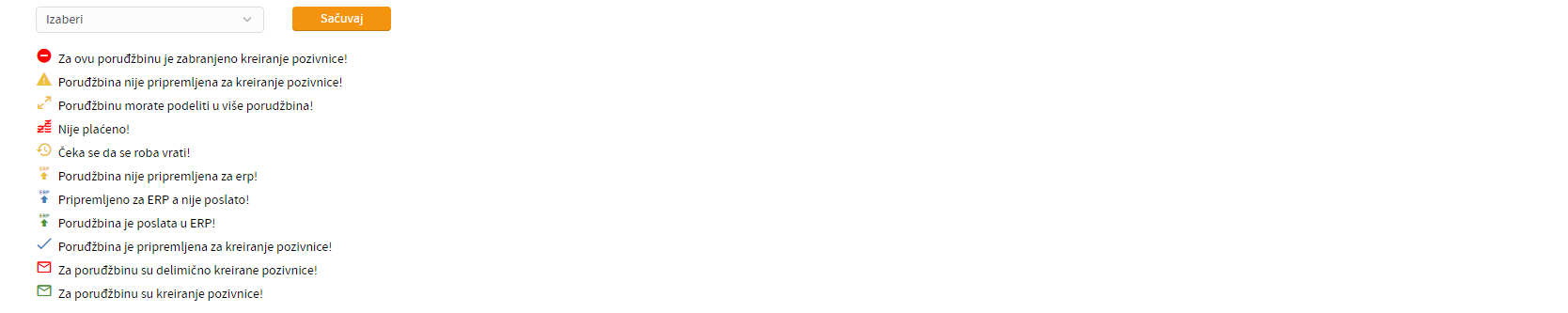 U okviru prikaza porudžbina nalaze se svi statusi porudžbine i to: